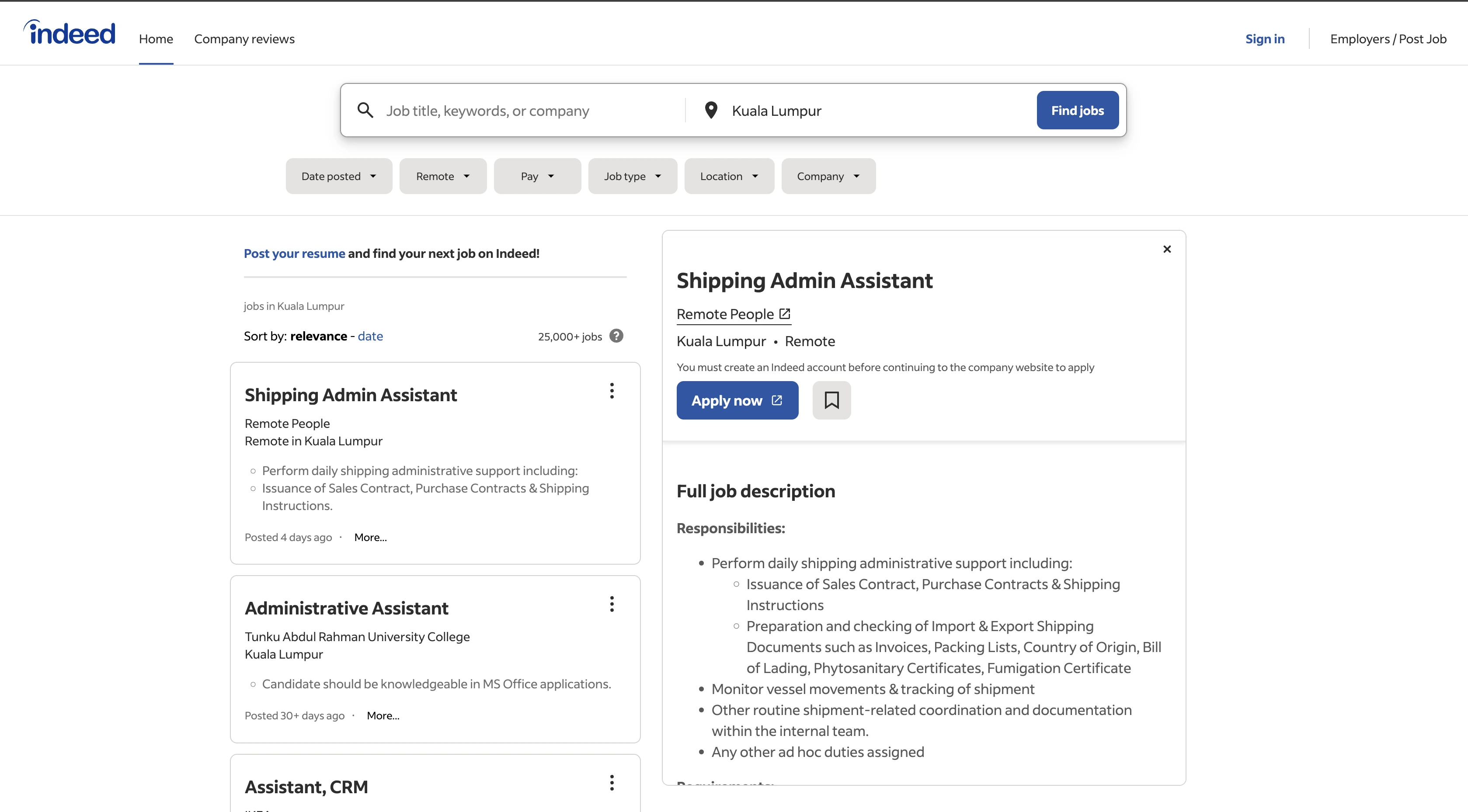 Indeed stands as a global job search giant, setting itself apart with its extensive reach and comprehensive features designed to meet the intricate needs of recruiters in Malaysia and beyond. What differentiates Indeed from other job portals is its robust applicant tracking system that streamlines the recruitment process for employers. With Indeed, you not only post jobs for free but also benefit from a sophisticated platform that aids in sorting job applications, ensuring that the most suitable candidates are highlighted. You can filter applications based on your or your client’s preferences, making the task of finding qualified talent more efficient. Indeed's interface also allows for the management and communication with candidates, simplifying the candidate management process. Moreover, the site boasts an impressive talent pool from various industries, enhancing the odds of discovering ideal candidates who can contribute to the growth of an organization.