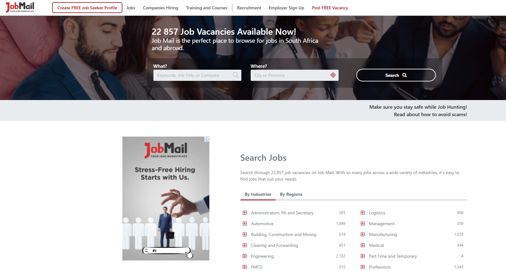 Job Mail offers free registration and basic postings, accessing 20,000+ vacancies for South African and international roles. The platform focuses on simplifying the recruitment process while maximizing reach across diverse candidate pools.