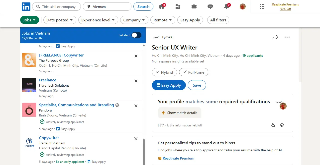 - The candidate pool and engagement level depend on how active users are on VietJobs. For specialized or high-level roles, response volume may be low.