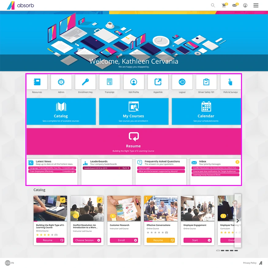 Absorb LMS is a scalable, AI‑enhanced platform that supports HR teams in automating onboarding, compliance, and employee upskilling, featuring customizable reporting, seamless HR system integration, and mobile access to streamline workforce development.[4]