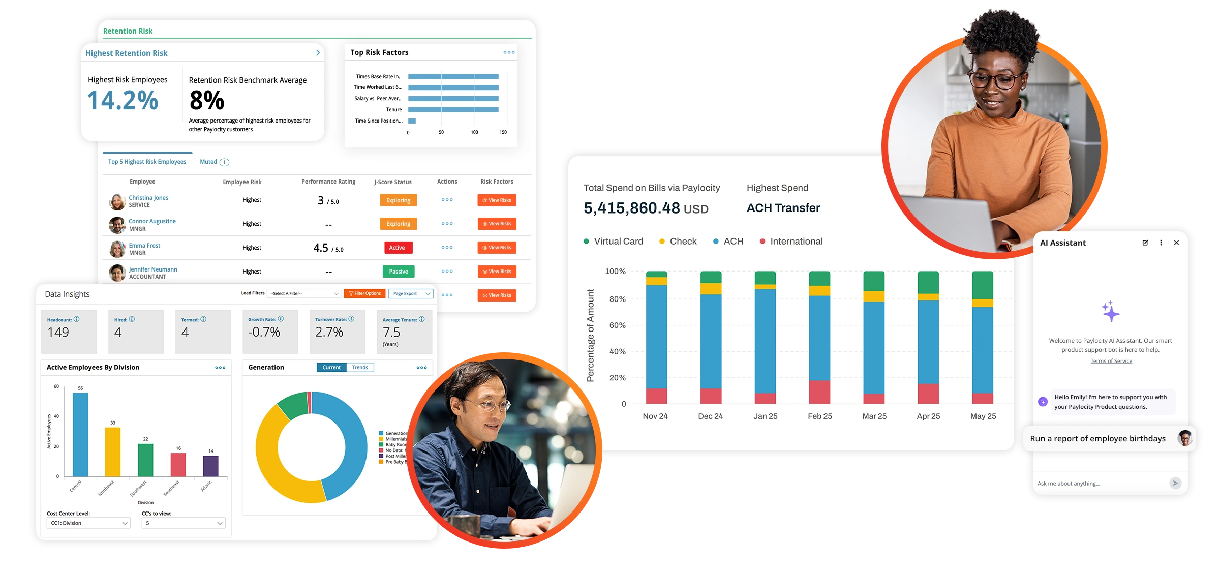 Paylocity is a human capital management solution that includes HR analytics designed to give HR teams insight into workforce utilization and engagement. Its Modern Workforce Index surfaces trends in system usage, employee engagement, demographics, retention rates, and labor costs. HR professionals can also leverage customizable dashboards and reporting tools to monitor these metrics, supporting data-driven workforce strategies.[11][13]