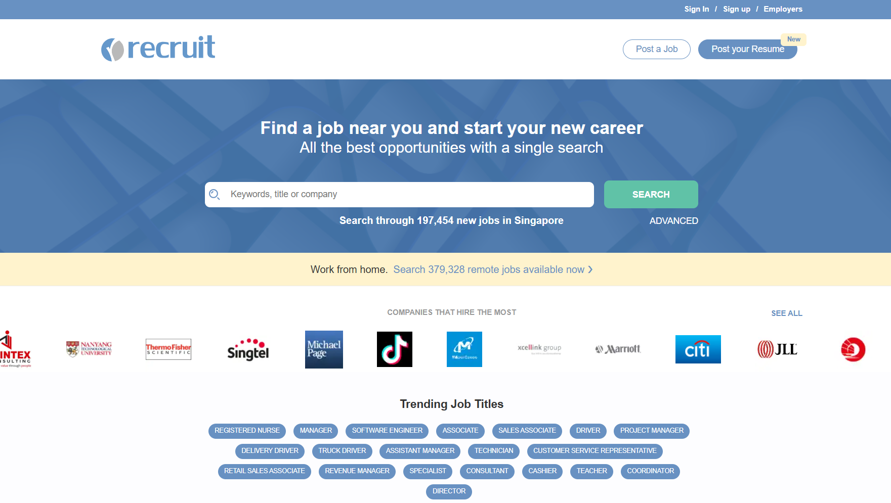 Known for company reviews and salary information in addition to job listings, Glassdoor serves as a job portal covering open roles in Singapore. In addition to allowing you to post jobs for free, Glassdoor also provides tools for managing employer branding and responding to reviews.