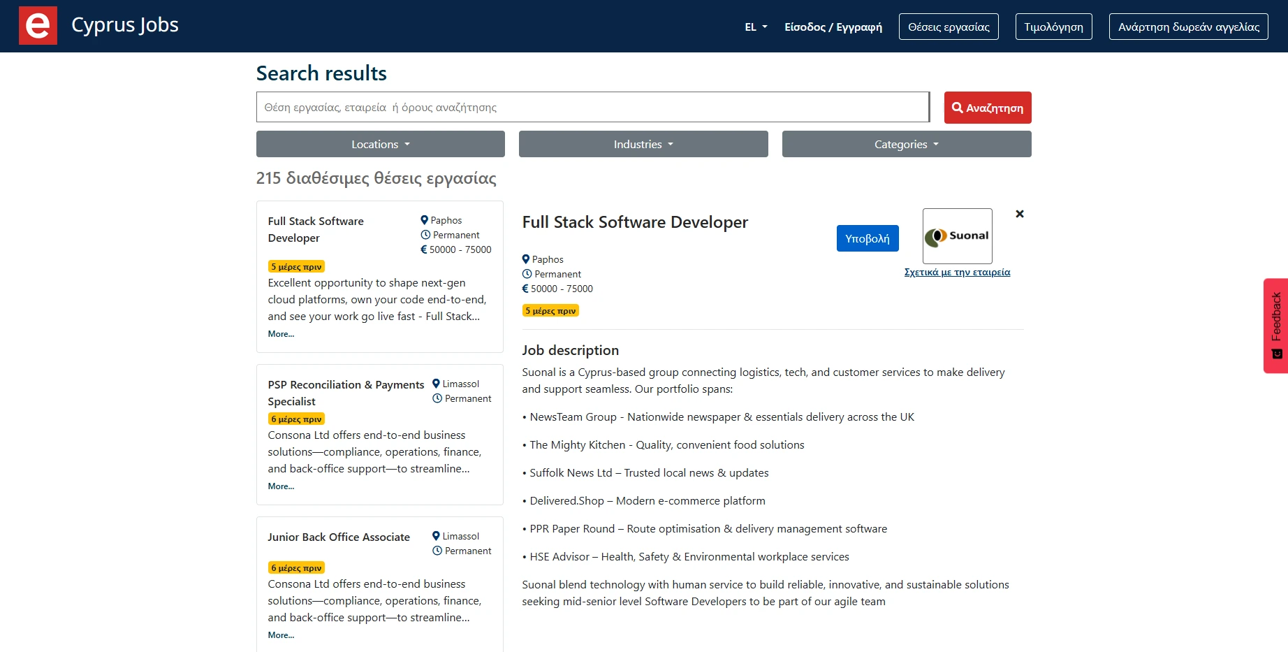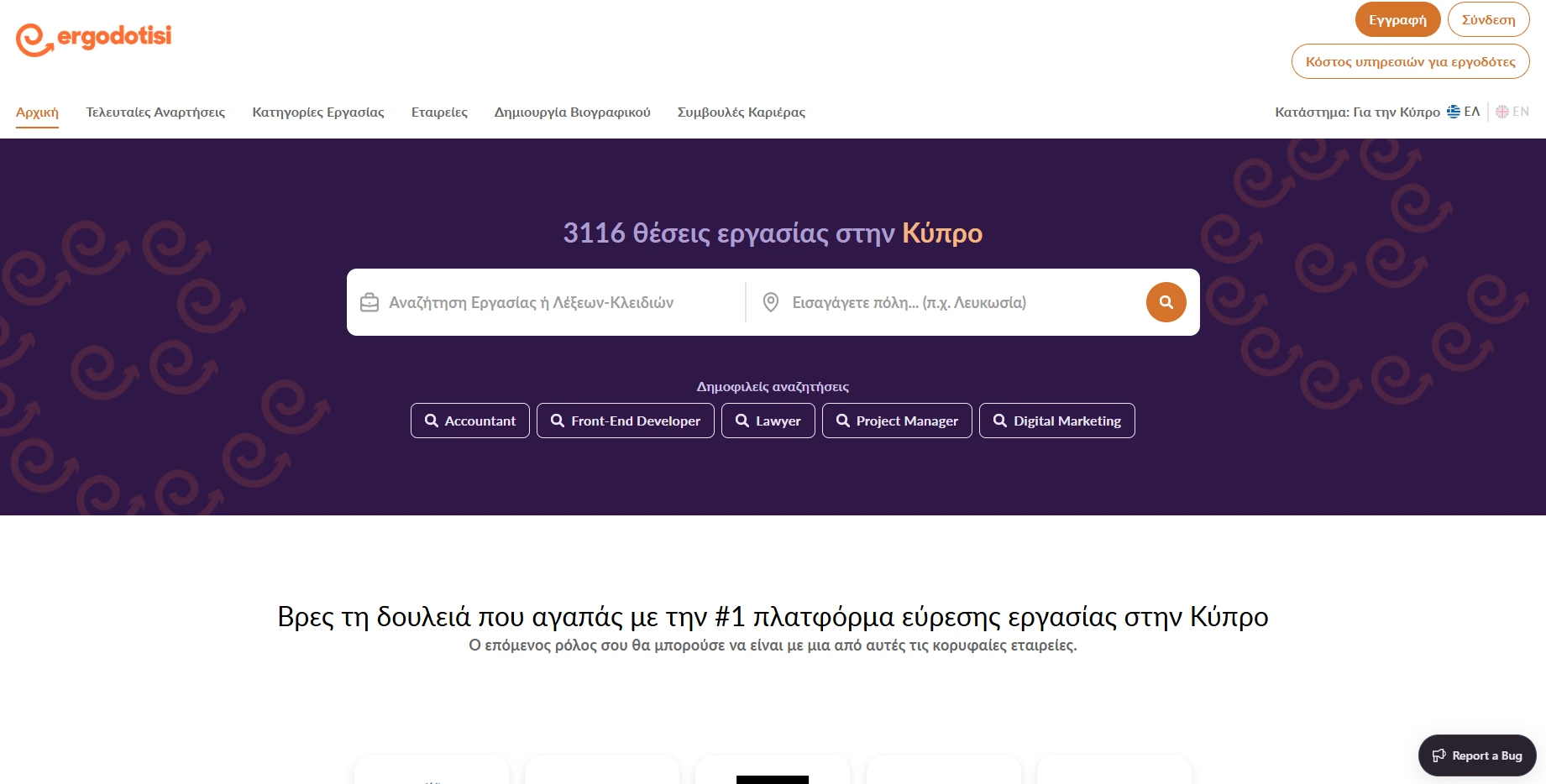 Ergodotisi is one of the leading employment websites in Cyprus, providing extensive listings across various professional sectors. It supports both Greek and English interfaces and offers tools for employers, such as CV searches and featured listings. The platform operates on a paid model, with a standard 30-day job post costing €45.
