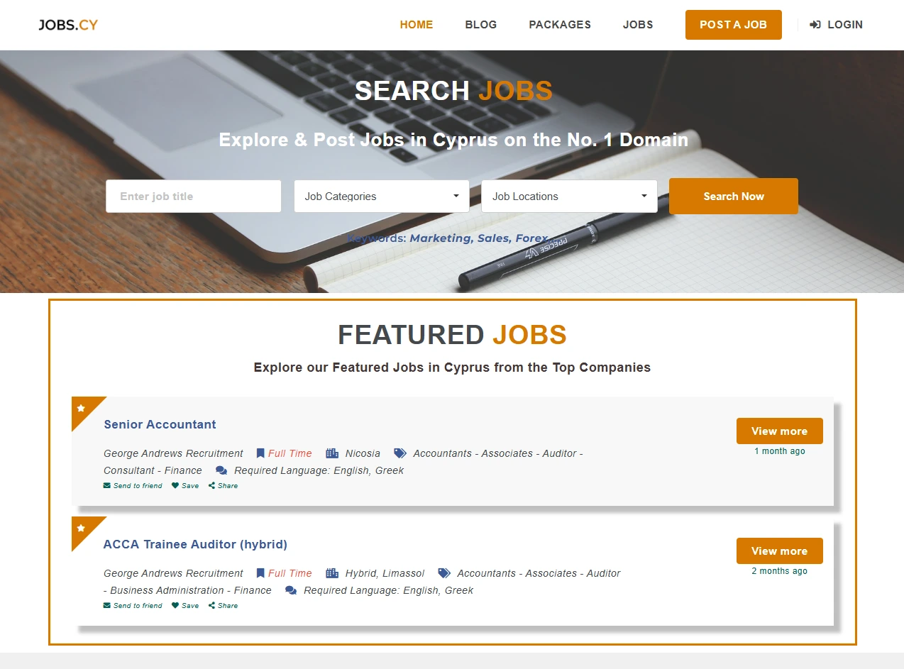 JobsCyprus.com operates as a job board based in Limassol. It provides online job listings for employers seeking to fill local or specialist roles. Job postings start at €30 for a single 30-day post, with packages up to €299 for 15 posts.