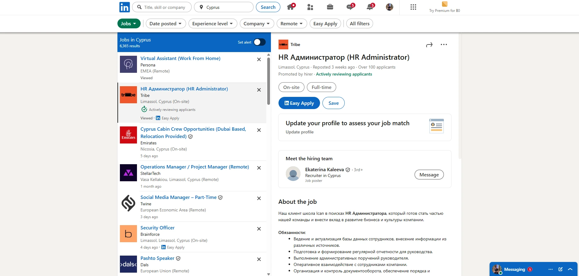 LinkedIn operates as both a professional networking platform and a recruitment site. It is widely used in Cyprus, particularly for professional and executive roles. Employers may post one free job at a time, with paid options available for additional or promoted listings.