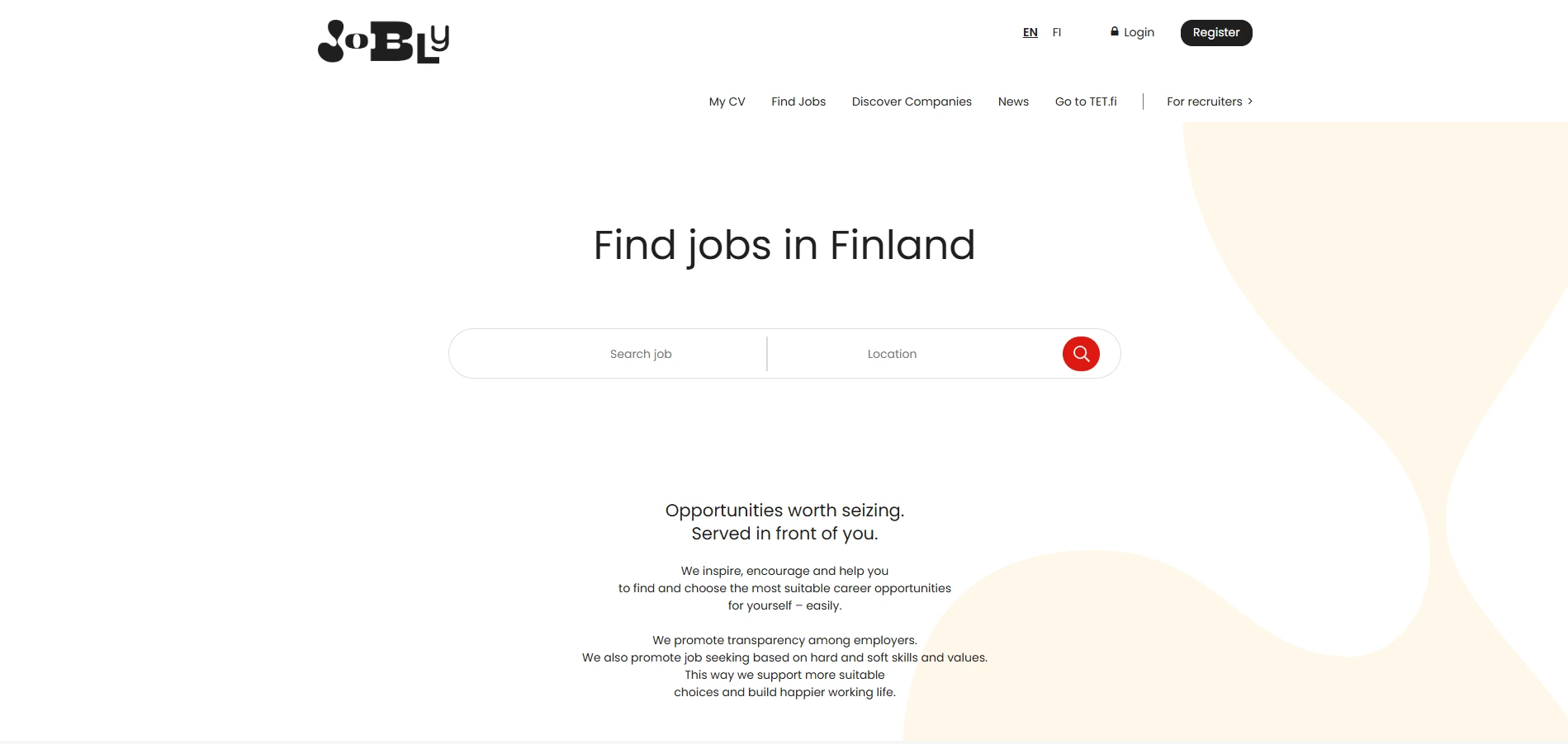 Jobly is the successor to Monster.fi under Alma Media, and continues to function as a major Finnish job portal with broad sector coverage. Ads posted on Jobly are distributed across Alma Media’s network (e.g. Iltalehti, Kauppalehti). The platform supports both Finnish- and English-language job listings.