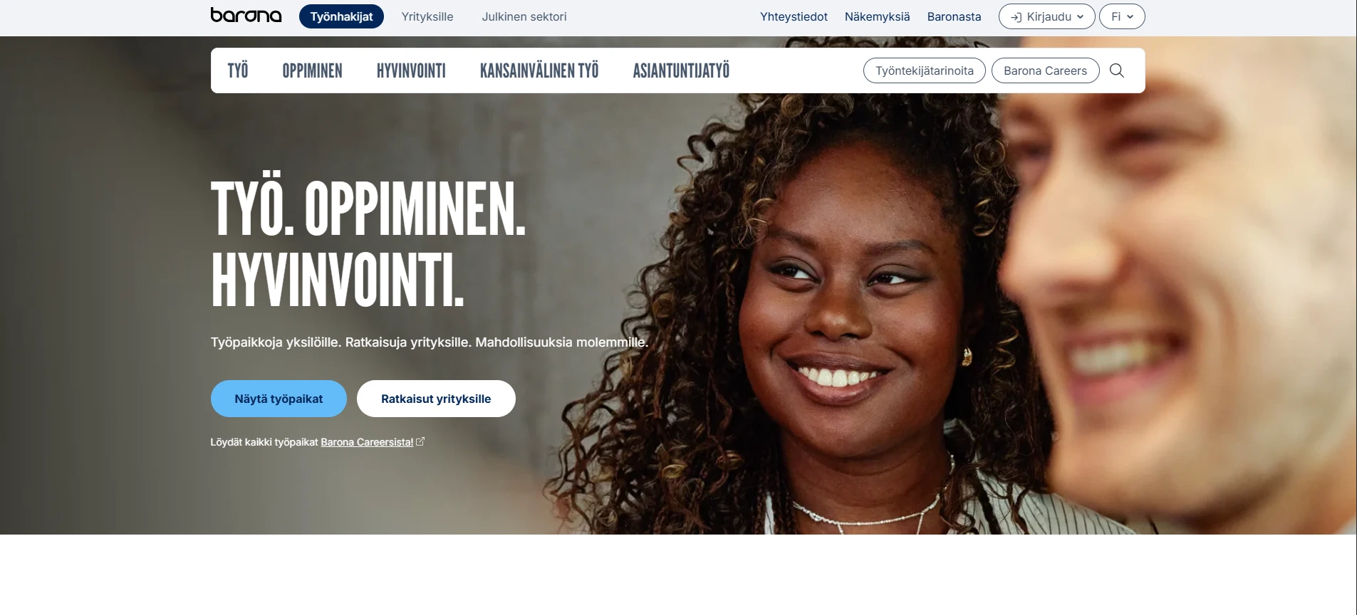 Barona is a major Finnish staffing and recruitment firm that also lists roles via its Barona.fi portal, spanning sectors like IT, logistics, healthcare, construction, sales, and more. It offers both temporary staffing and direct hire services, serving many industries. It acts as a full recruitment partner for many employers.