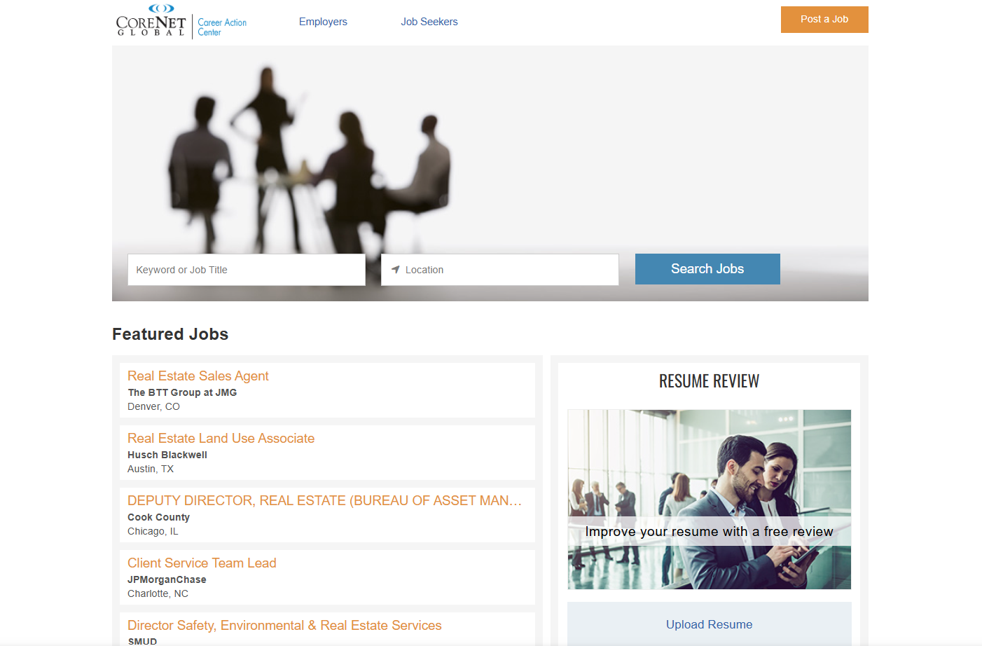 CoreNet Global represents nearly 10,000–11,000 corporate real estate executives in 50 countries, making its Career Center a premier destination for corporate real estate (CRE) talent. The platform serves professionals with strategic responsibility for corporate real estate assets, focusing on positions that align real estate strategy with business objectives. CoreNet Global's thought leadership in the CRE profession attracts high-caliber candidates seeking strategic roles.
