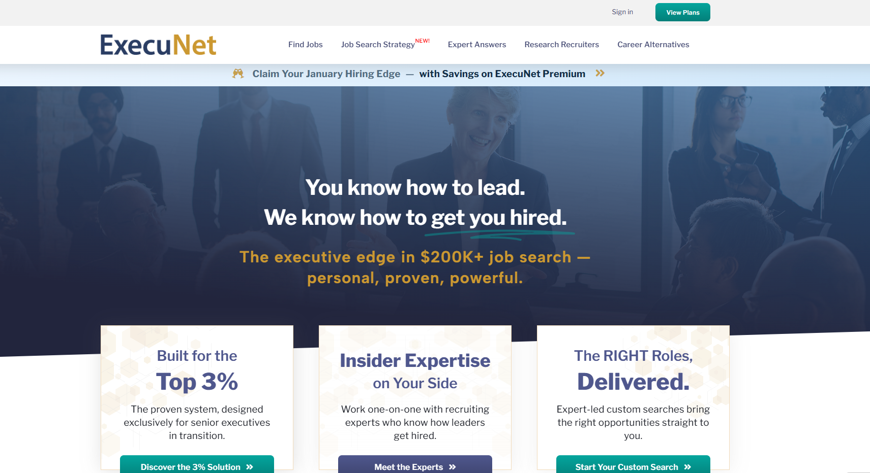 ExecuNet opera como una comunidad exclusiva para ejecutivos de alto nivel, centrándose en el mercado laboral «invisible». Es una plataforma ideal para los reclutadores que buscan cubrir puestos de alta dirección o de vicepresidente con candidatos que valoran la discreción y las redes de contactos de alto nivel.
