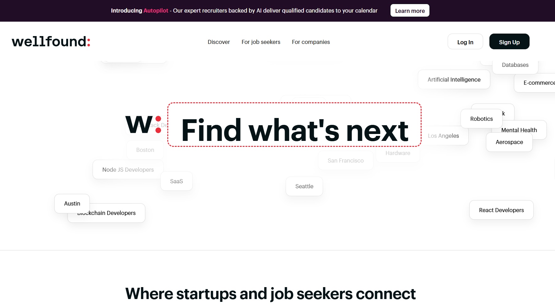 Wellfound es el destino ideal para el mundo de las startups, ya que conecta a empresas innovadoras con talentos que prosperan en entornos dinámicos. Ofrece herramientas de reclutamiento de primera calidad que ayudan a las startups a crecer rápidamente mediante la identificación de candidatos con experiencia específica en «etapas de crecimiento».